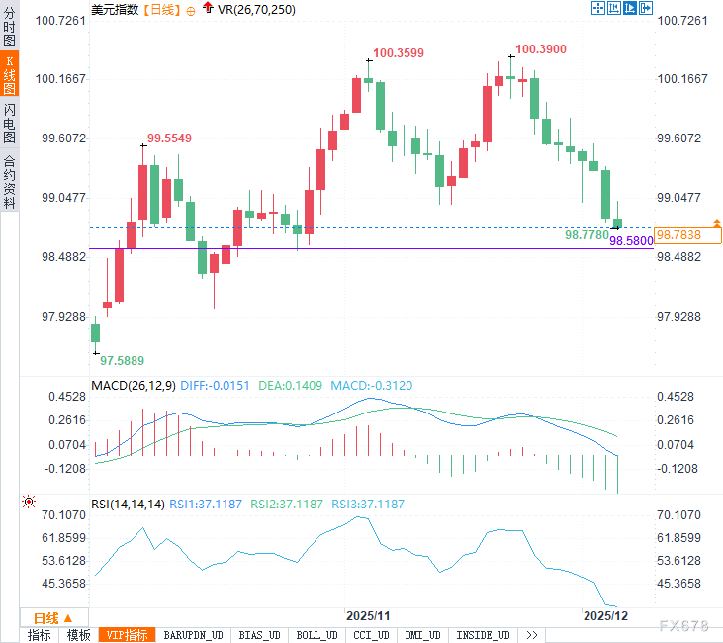 汇通财经APP讯——12月4日,周四欧洲时段,美元指数目前交投98.80附近,正处于一个高度敏感的时间节点。12月1