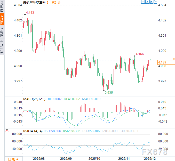 不过截至目前,整体债券市场仍保持相对稳定,过去数月十年期收益率始终在4%附近徘徊。作为债市通胀预期主要指标的盈亏平衡利率同样表现平稳,这表明市场对美联储可能引发未来通胀激增的担忧或被过度放大。周一亚洲时段,十年期美债收益率企稳于4.13%附近。