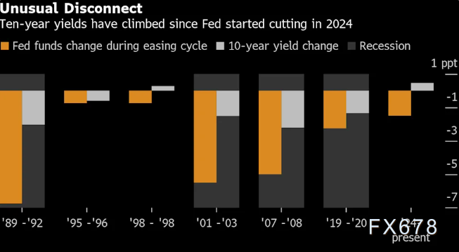 汇通财经APP讯——债券市场对美联储降息的反应极不寻常。从某些指标来看,这种央行降息而国债收益率攀升的背离现象,是自上世纪90年代以来从未出现过的。